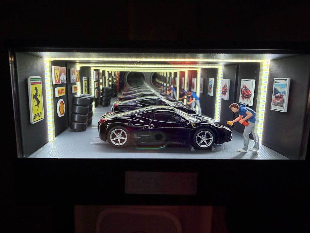 The Infinity Garage is designed for 1:64 scale diecast cars (Hot Wheels, Tomica, Tarmac, Inno64, etc).